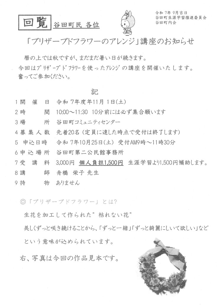 「ブリザードフラワーのアレンジ」講座のお知らせ(再回覧)
